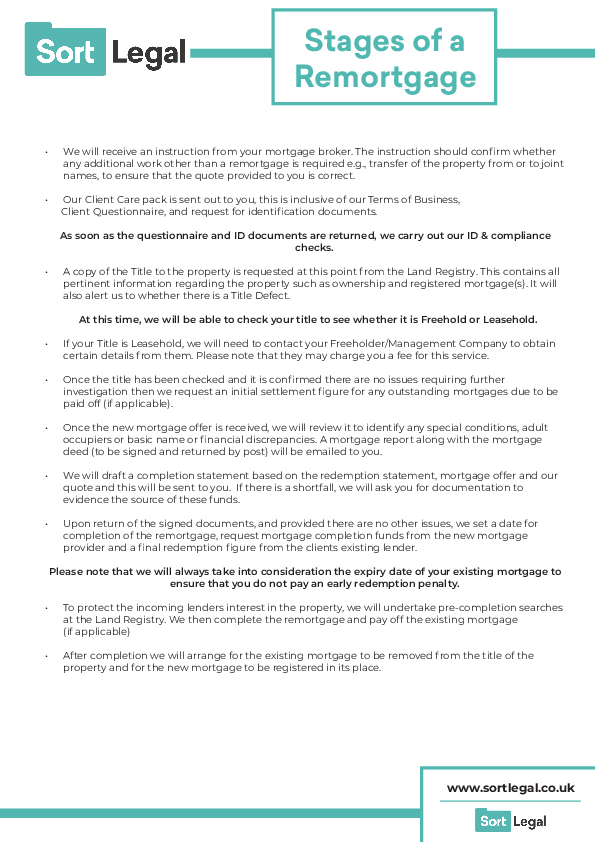 Want to find out about the Conveyancing process for a Remortgage? Look no further. We've pulled together a handy PDF to take you through the steps of a Remortgage.
